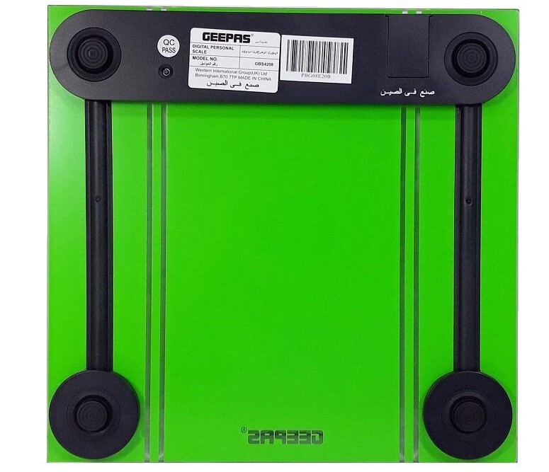 BÁSCULA DIGITAL PERSONAL GEEPAS CON SISTEMA DE SENSORES DE DEFORMACIÓN DE ALTA PRECISIÓN GBS4208 Capacidad máxima de peso: 180 Kg