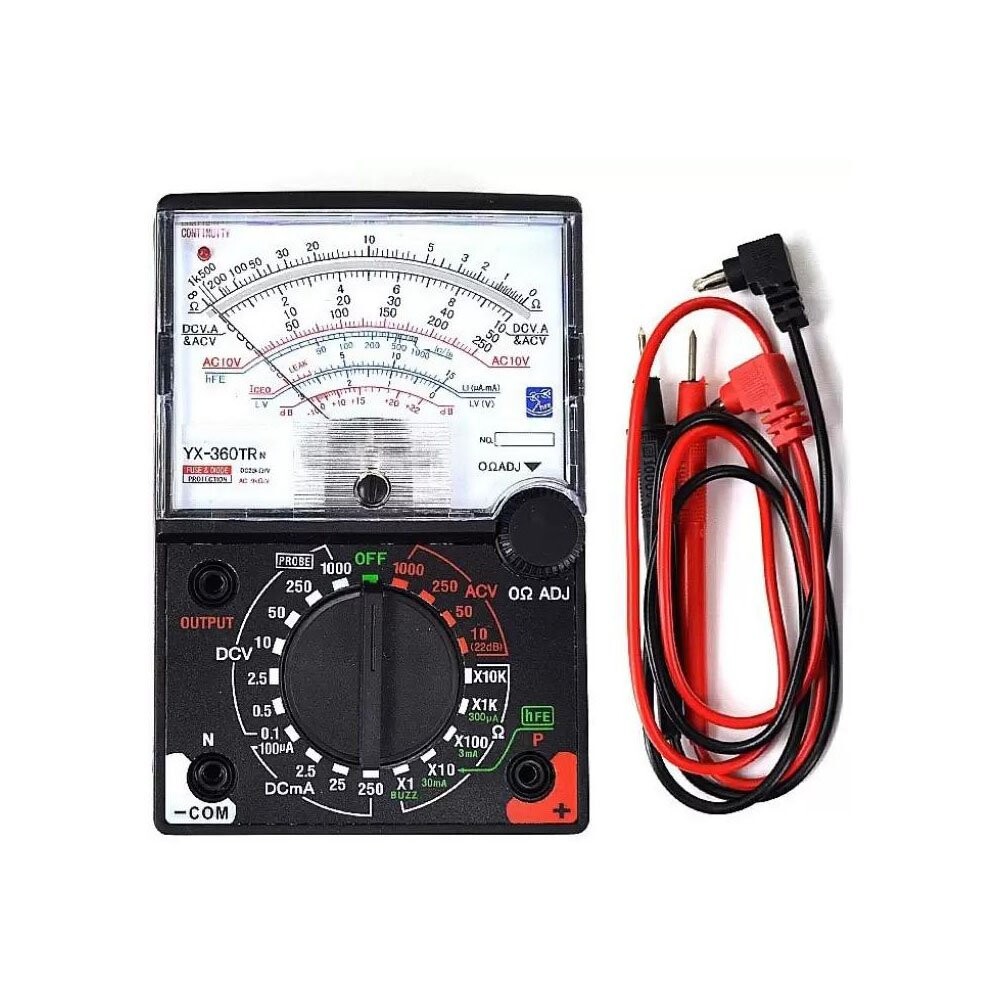El Sunwa YX-360TRE-B es un multímetro analógico, puede usarlo para medir voltaje CA / CC, corriente CC, resistencia, verificación de diodos, continuidad y corriente de fuga del transistor, para corriente CC, puede medir tan bajo como 10 microamperios y hasta 250 mA, lo cual es difícil de hacer con un multímetro digital.