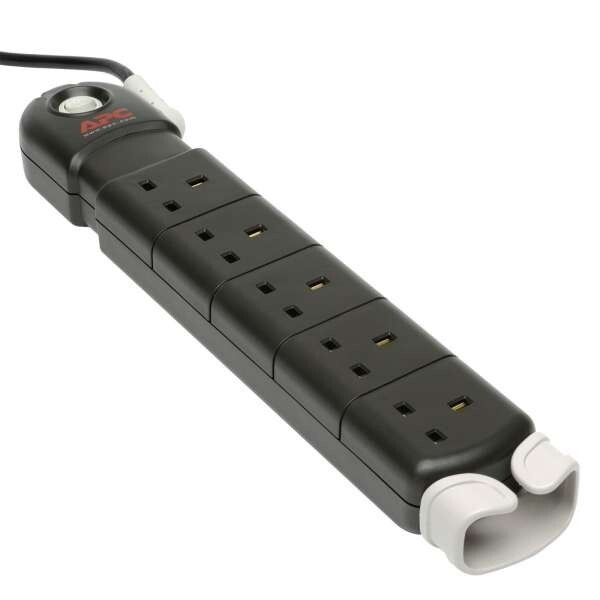 - APC, el proveedor reconocido de productos y servicios de protección de energía, ha fabricado el arrebato esencial con 5 enchufes de potencia que es una unidad de defensa de sobretensión sólida y confiable para la protección de sus computadoras y productos electrónicos.
