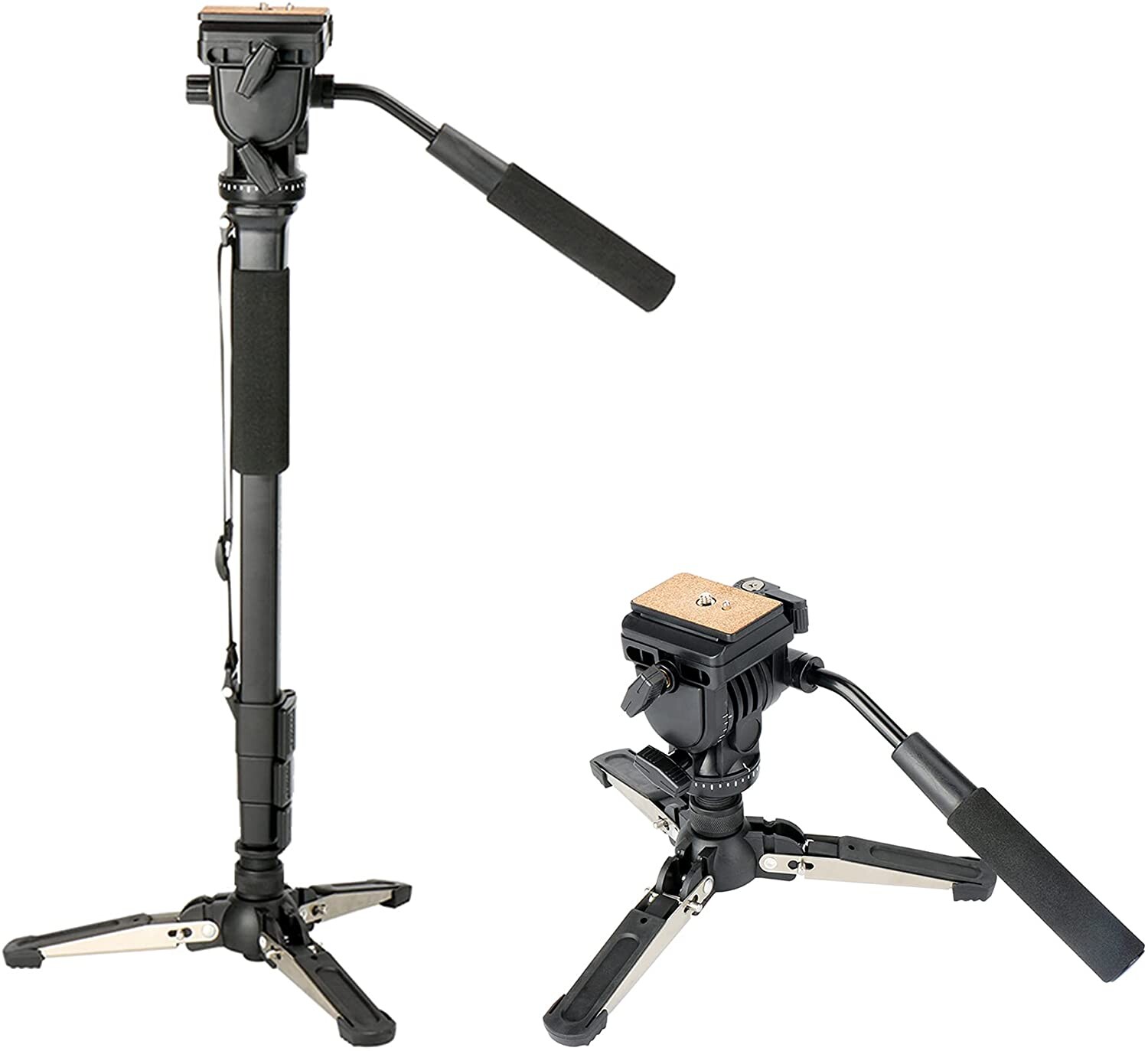Trípode de video DMK T-288 Monopod y placa de liberación rápida con cabezal panorámico fluido