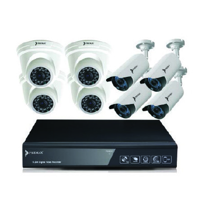 Premax PM-DVRKIT280 es una solución confiable para mejorar la seguridad de su hogar o lugar de trabajo. Un kit de cámara de seguridad es un juego completo económico de cámara CCTV, grabadora de video, cables, fuente de alimentación, software y realmente imprescindible en la vida actual. Este PM-DVRKIT280 contiene en la caja 4 piezas de cámara bullet para exteriores, 4 piezas de cámara domo para interiores, 8 piezas de cable coaxial listo de 20 metros de cada tipo, 1 cable de red, 1 mouse, fuente de alimentación para cámara y grabadora de video, manual de usuario, software, detalles de la aplicación móvil.