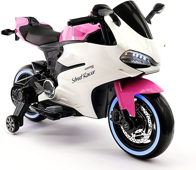 - Realista y estable: Focos LED realistas y luces traseras de color estilo de carreras. Motocicleta electrica con neumaticos de caucho de goma EVA suave sin mantenimiento y ruedas de entrenamiento dobles para una conduccion mas comoda y estable.