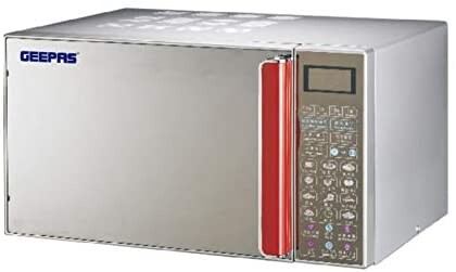 Horno microondas digital Geepas 27L - Horno microondas de 900 W con múltiples menús de cocción | Función de recalentamiento y descongelación | Bloqueo para niños | Puerta con botón pulsador, controles digitales