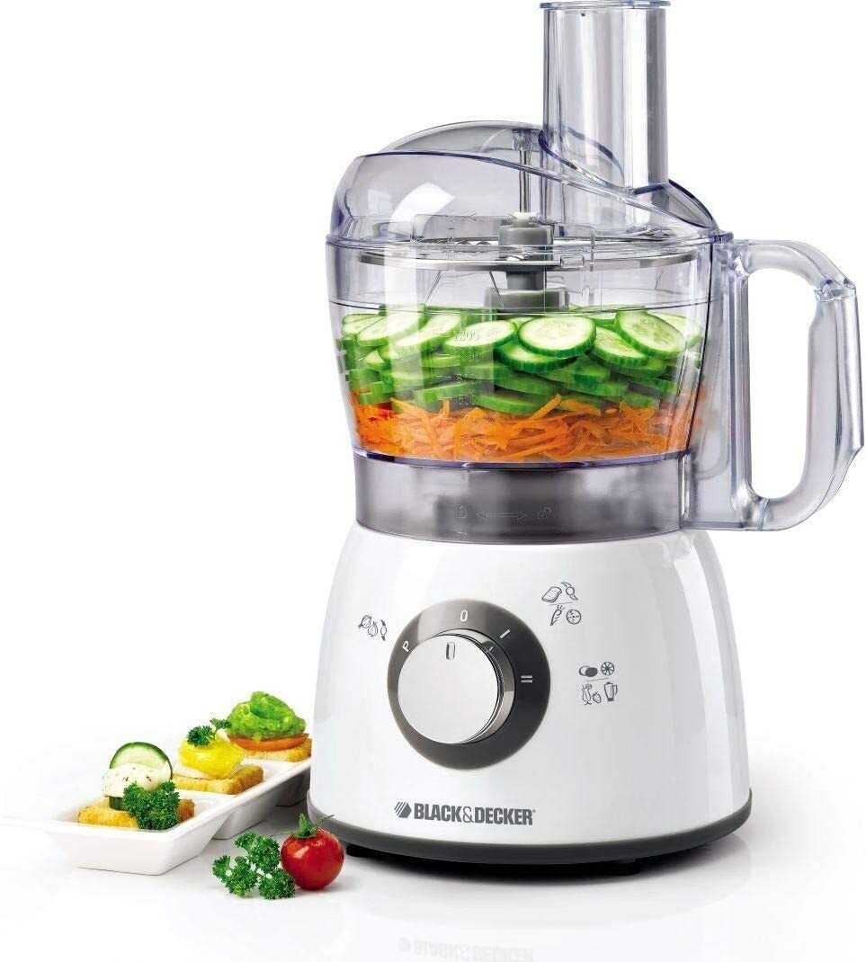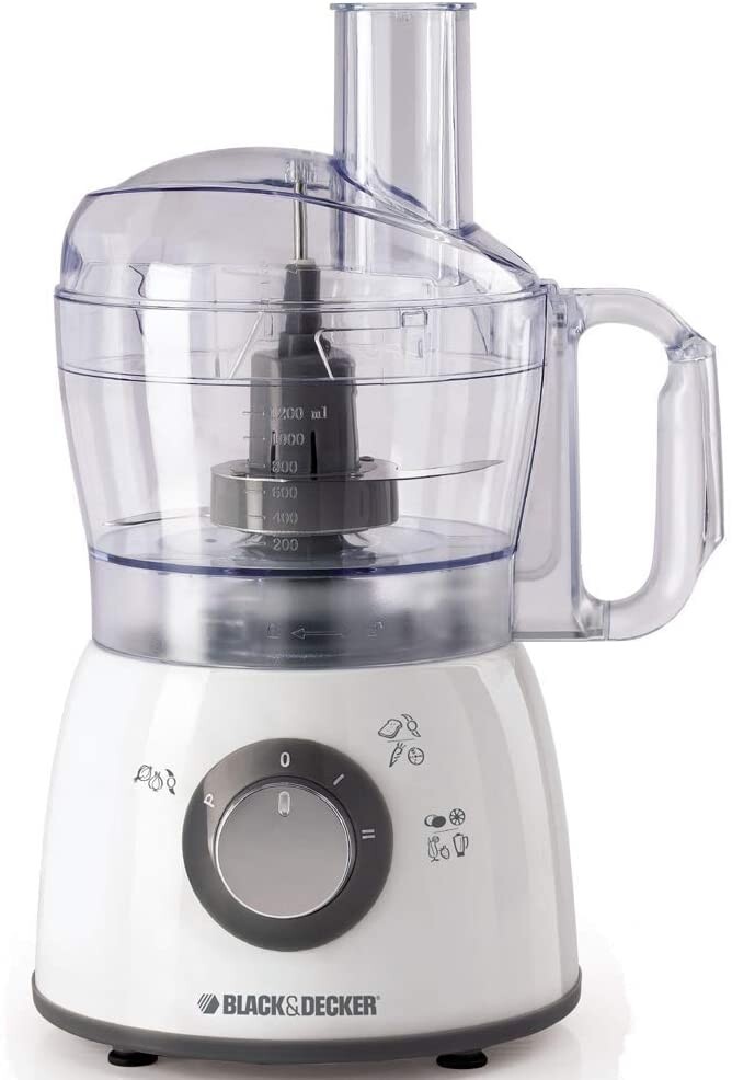 Black + Decker 400W Procesador de alimentos de 18 funciones con 4 accesorios, cuchillas de acero inoxidable y función de pulso de 2 velocidades, 1,2 litros, FX400-B5 blanco