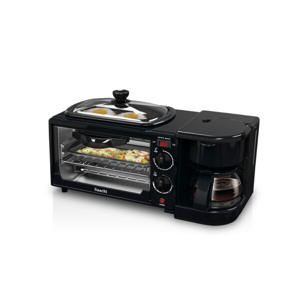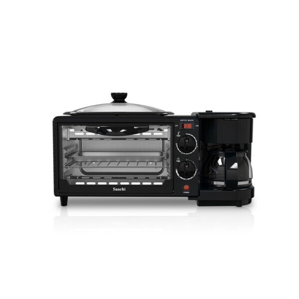 Se dice que el desayuno es la comida más importante del día y no podríamos estar más de acuerdo. Ya sea que esté buscando preparar una taza de café, preparar deliciosos huevos y panqueques o simplemente comenzar el día con tostadas frescas, Saachi lo tiene cubierto en este práctico aparato. La bandeja calentadora con tapa de vidrio le permite preparar sus platos de desayuno favoritos justo encima de este aparato. La cafetera le permite preparar un refrescante café negro o incluso puede usarse como hervidor si es necesario. Finalmente, el mini horno eléctrico se puede utilizar para todas sus necesidades de horneado o para tareas simples como preparar tostadas. ¡Este electrodoméstico es imprescindible para cualquiera que busque comenzar el día de la mejor manera!