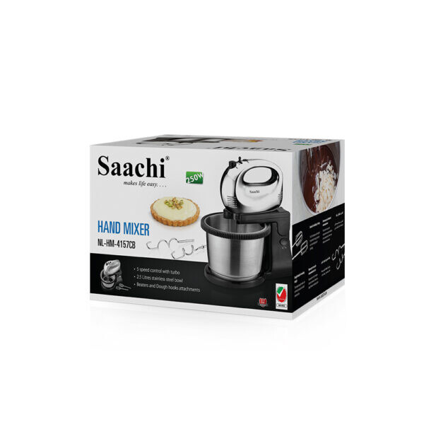 La batidora manual Saachi de 3 velocidades, NL-HM-4157CB, es una gran adición a su cocina para simplificar sus tareas diarias. Los batidores planos están diseñados para fines generales de mezcla, como batir y mezclar. El bol giratorio puede realizar la mezcla automáticamente, lo que le permite realizar otras actividades en la cocina. Las funciones Turbo permiten una mezcla instantánea a alta velocidad. Cuando prepares esa masa perfecta para un pastel suave y delicioso, se preparará con una consistencia extrema.