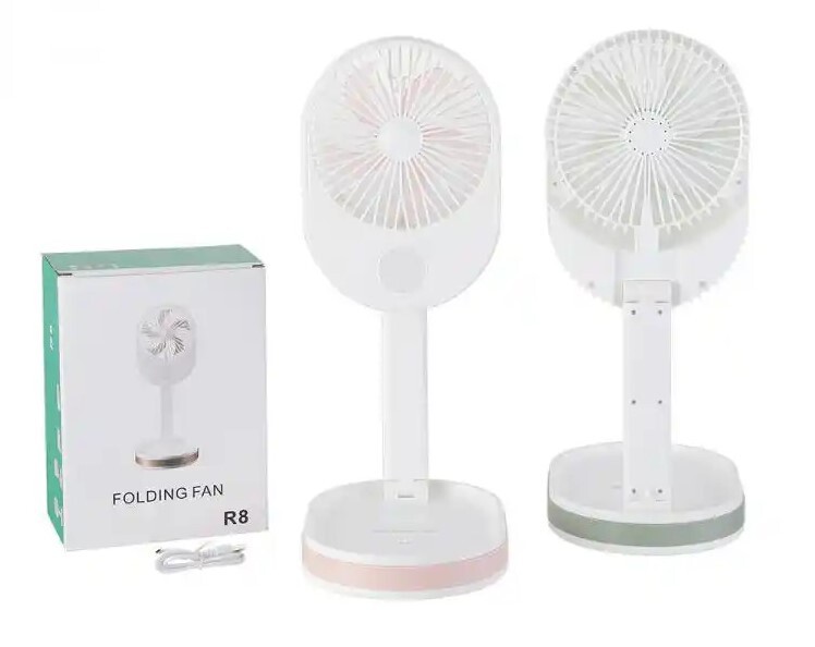 Nuevo R8 con luces, ventilador plegable, ventilador de camping, ventilador de carga usb, ventilador pequeño de escritorio