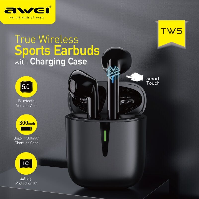 AWEI T21 Sport Auriculares inalámbricos Bluetooth Tipo-c Auriculares para juegos con micrófono Manos libres.