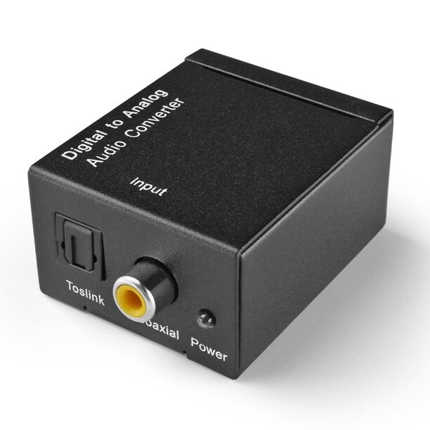 Convierte señales de audio PCM digitales coaxiales o toslink en analógicas L / R RCA