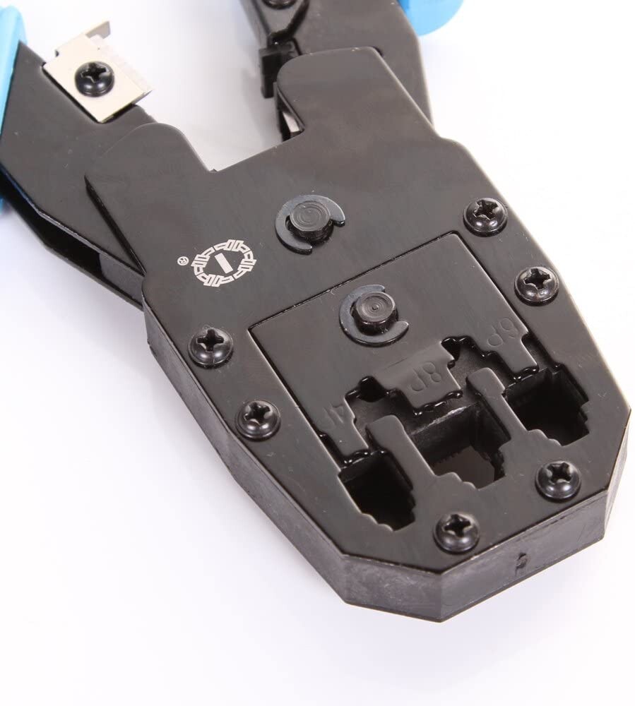 - El eool para cortar, prensar enchufe modular: enchufes 8P8C / RJ-45, 6P6C / RJ-12, 6P4C / RJ-11, 4P4C, 4P2C.