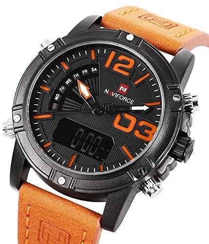 Naviforce NF9095M Reloj de movimiento dual para hombre con calendario luminoso, luz LED, 3 ATM -