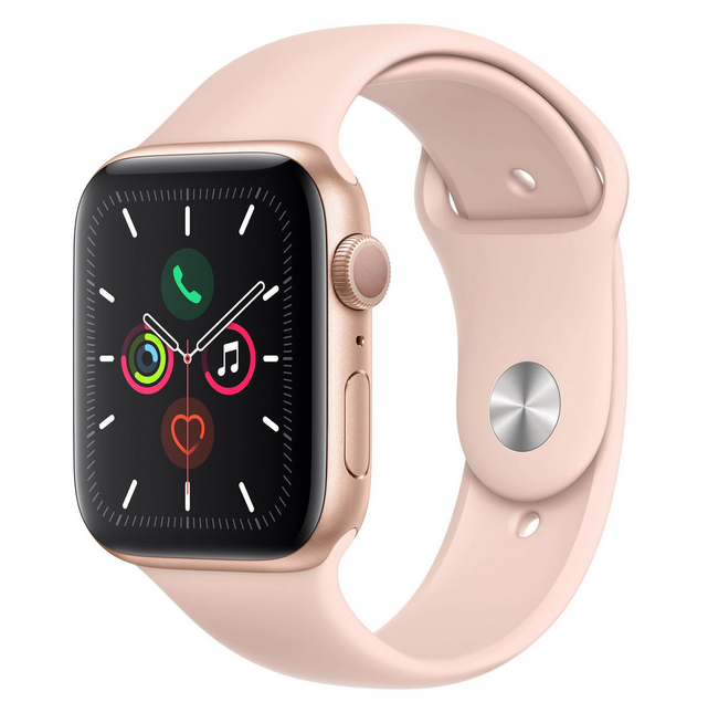 Apple Watch Series 5 GPS 44 mm de aluminio dorado con correa deportiva rosa