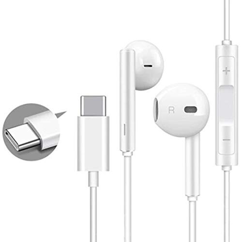 Auriculares inteligentes tipo C con cable con micrófono para llamadas, bajos HD y auriculares estéreo de alta fidelidad con diseño deportivo tipo C